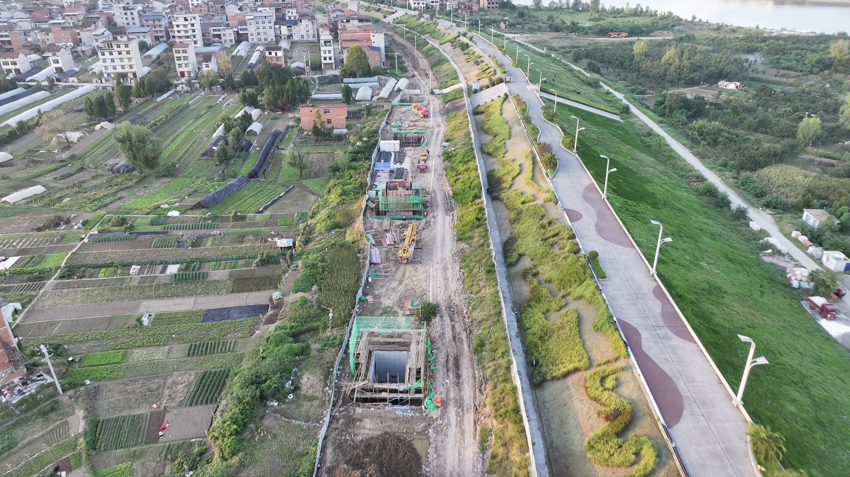 當(dāng)前,各關(guān)鍵節(jié)點工程穩(wěn)步推進(jìn)。寇家溝片區(qū)已完成污水管道2600米、擋墻475米、箱涵10米、道路破除及恢復(fù)5200平方米、箱涵清淤270米;東壩白廟片區(qū)污水管道全線貫通,新建單日消納3300立方米污水提升泵站1座,雨水頂管施工完成100米、明開挖完成150米。