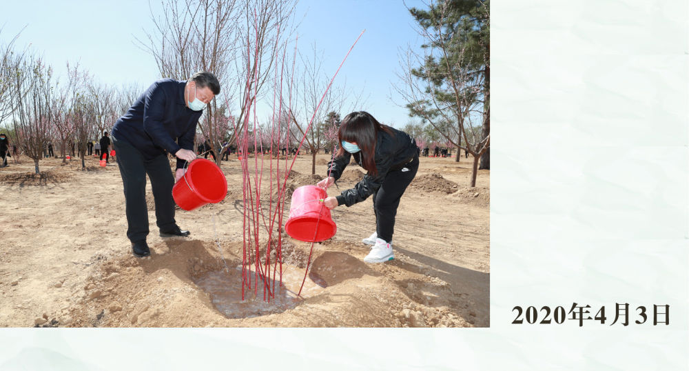 這是習(xí)近平總書記同大家一起植樹。