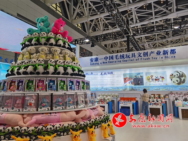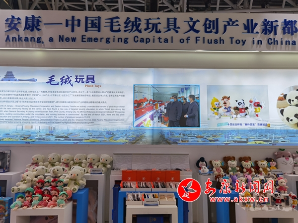今年五月,第五屆絲綢之路國(guó)際博覽會(huì)暨中國(guó)東西部合作與投資貿(mào)易洽談會(huì)在西安舉行。走進(jìn)安康展館,毛絨玩具搭建的小山格外顯眼,十四運(yùn)吉祥物“秦嶺四寶”占據(jù)C位,展廳四周也用毛絨玩具娃娃進(jìn)行點(diǎn)綴。前來(lái)拍照、采購(gòu)、咨詢的市民絡(luò)繹不絕。不少企業(yè)現(xiàn)場(chǎng)接到訂單。