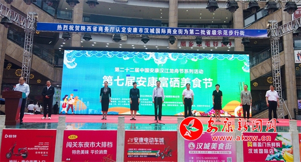 本網(wǎng)訊(記者 李。6月4日,第七屆安康富硒美食節(jié)開(kāi)幕式在漢城國(guó)際商業(yè)街舉行。省商務(wù)廳一級(jí)巡視員馬瑞軍、省貿(mào)促會(huì)二級(jí)巡視員成云甫,市委常委、宣傳部部長(zhǎng)、石泉縣委書(shū)記陳蓮,市人大常委會(huì)副主任楊首艷,市政府副市長(zhǎng)楊淼,市政協(xié)副主席唐紋出席開(kāi)幕式。