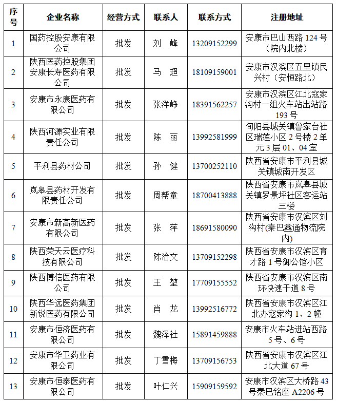 全市疫情防控用藥械物資流通企業(yè)名單