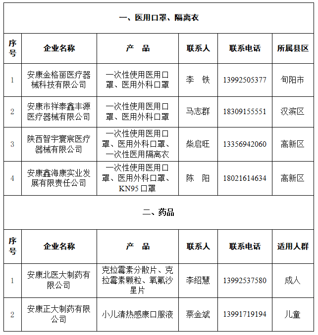 全市疫情防控用藥械物資生產(chǎn)企業(yè)名單