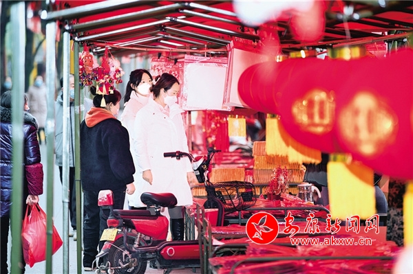 ⑨1月16日,春節(jié)前夕,平利縣洛河鎮(zhèn)集鎮(zhèn)老街居民紛紛上街置辦春聯(lián)等年貨,一派喜迎新春的熱鬧氛圍。