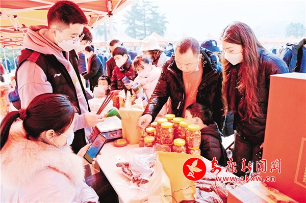⑥紫陽(yáng)年貨節(jié)上,本地企業(yè)正展示當(dāng)?shù)靥禺a(chǎn)。