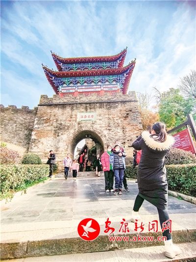 4、1月26日,石泉老街北門(mén),一對(duì)姐妹一襲新衣迎新春。