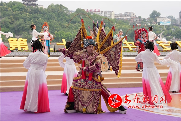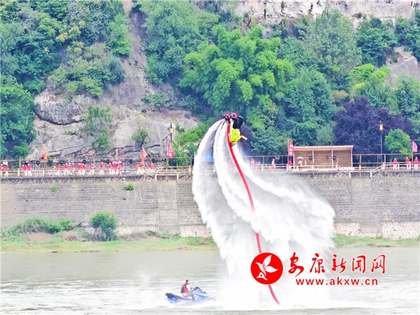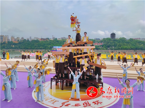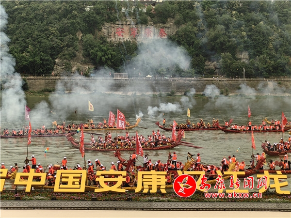 渾厚雄壯的“喊江調(diào)子”中,江面28艘龍舟抖擻精神、踏浪而來,江岸健身龍表演同步登場(chǎng),朝氣蓬勃。歌舞《安安康康鬧龍舟》、陜南民歌聯(lián)唱《漢水歡歌》、龍舟橫渡、健身操《活力安康》配合摩托艇“水上飛人”、傳統(tǒng)漢劇《漢江上傳唱著漢調(diào)二黃》等精彩節(jié)目輪番上演,搶鴨子摸鯉魚、民俗舞蹈《方寸之間》等安康特有民俗節(jié)目將現(xiàn)場(chǎng)氛圍推上一輪又一輪高潮。最終,開幕式在歌舞《幸福安康》中圓滿落下帷幕。
