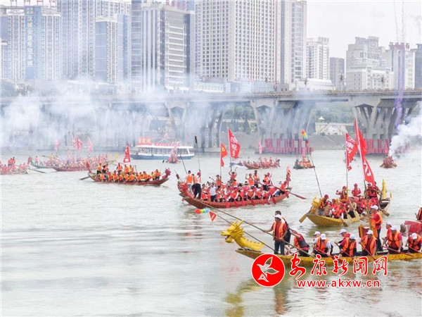 本網(wǎng)訊(記者 艾蓓 吳單 陳楚珺 )漢水起舞,龍騰盛世,平安順利,幸福安康。6月22日上午9時(shí)整,一江兩岸鼓角齊鳴,“中國(guó)紅 紅西鳳”杯第二十三屆中國(guó)·安康漢江龍舟節(jié)主題活動(dòng)盛大啟幕。