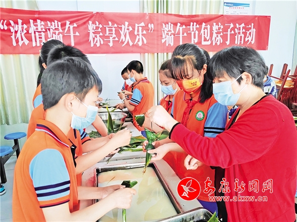 端午節(jié)前夕,石泉縣池河小學(xué)組織學(xué)生開展“濃情端午 粽享歡樂”勞動(dòng)實(shí)踐體驗(yàn)活動(dòng)。 賈自強(qiáng) 攝