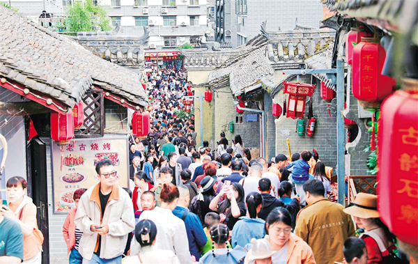 “吃個(gè)石鍋魚(yú)、品杯柚子茶,再去看特色民俗表演,體驗(yàn)古風(fēng)古韻……”這個(gè)“五一”,國(guó)家AAAA級(jí)景區(qū)漢江石泉古城憑借其古風(fēng)古韻、特色美食和豐富多彩的文旅活動(dòng),吸引了全國(guó)各地游客前來(lái)“打卡”,可謂是贏得了“潑天的富貴”。青磚灰瓦的秦巴老街在陽(yáng)光下熠熠生輝,絡(luò)繹不絕的游客,或駐足于古色古香的店鋪前聆聽(tīng)歷史的回聲,或擠坐在火爆的石鍋魚(yú)餐館縱享味蕾盛宴,或沉浸于各種傳統(tǒng)文化活動(dòng)中感受文化的魅力,為老街這幅水墨畫(huà)卷賦予靈動(dòng)的色彩。“五一”假期,石泉秦巴老街開(kāi)展繪畫(huà)攝影展、民俗收藏展、鬼谷子縱橫棋PK、鬼谷子誕辰紀(jì)念活動(dòng)、手工制作、茶歇、漢服演繹、彈唱、縱橫棋體驗(yàn)、社團(tuán)展演、常態(tài)化將軍巡城、縣令審案、繡球迎親等10多項(xiàng)文旅小節(jié)目演繹活動(dòng),以傳承傳統(tǒng)文化為主線(xiàn),深度推進(jìn)文旅融合,讓各地游客不虛此行。“古色古香的老街風(fēng)情,極具歷史沉淀,加上這些互動(dòng)性的民俗表演,精彩紛呈,值得一游!”來(lái)自寶雞的游客林女士由衷地贊美。