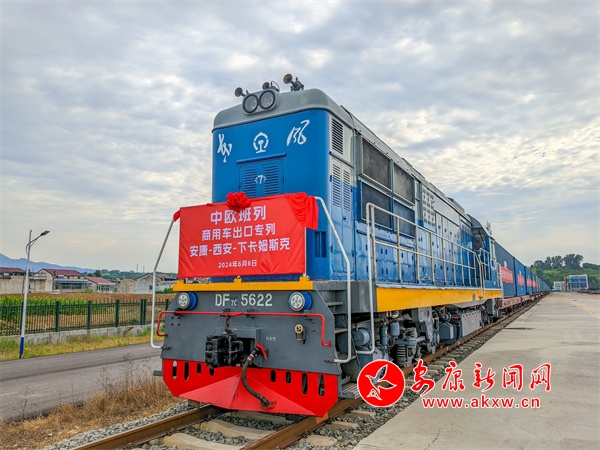 10時(shí)40分,隨著一聲火車機(jī)車汽笛轟鳴,滿載著110輛商用汽車的46050次貨運(yùn)專列從安康市恒口火車站駛出,經(jīng)西安國際港站轉(zhuǎn)運(yùn),再由滿洲里鐵路口岸出境,預(yù)計(jì)13天后抵達(dá)俄羅斯下卡姆斯克,全程運(yùn)行6346公里。我市首趟中歐班列商用車出口專列正式開行,既是全市大力發(fā)展現(xiàn)代物流產(chǎn)業(yè)、加快建設(shè)全國綜合交通樞紐的里程碑,也是著力擴(kuò)大對內(nèi)對外開放、主動(dòng)融入和服務(wù)“一帶一路”發(fā)展新格局的重要突破,同時(shí)標(biāo)志著安康無水港正式投用,無水港多式聯(lián)運(yùn)平臺(tái)北向大通道正式貫通。3aB安康新聞網(wǎng)
