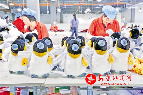 6月的驕陽(yáng)曬得大地一片火熱,偉高仿真毛絨玩具廠生產(chǎn)車間內(nèi),也是一派趕訂單、忙生產(chǎn)的熱鬧場(chǎng)景。一臺(tái)臺(tái)全自動(dòng)繡花機(jī)和全自動(dòng)激光切割機(jī)飛速運(yùn)轉(zhuǎn),百余名工人巧手翻飛,一個(gè)個(gè)做工精美的仿真毛絨玩具快速?gòu)?ldquo;流水線”誕生。公司負(fù)責(zé)人龍武臉上掛滿笑容:“我們公司都是訂單式生產(chǎn),現(xiàn)在訂單量很充足,已經(jīng)排到8月份了。產(chǎn)品銷售主要是以歐美為主,覆蓋全球40多個(gè)國(guó)家和地區(qū)。”