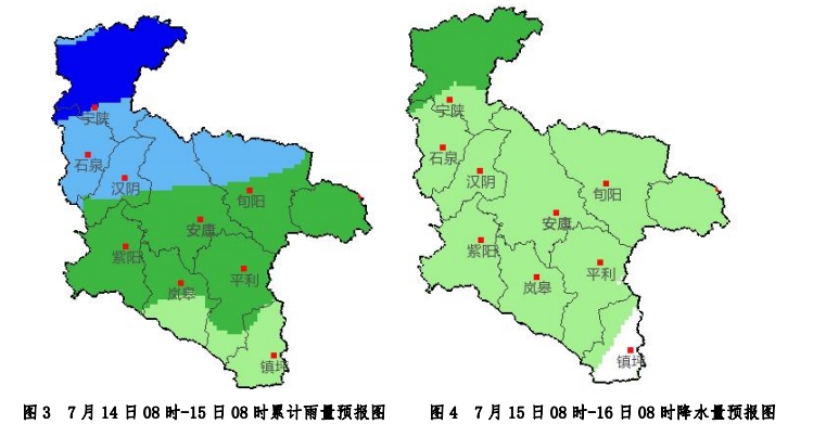 14日:白天南部小到中雨轉陰天,寧陜、石泉、漢陰、漢濱北部中到大雨,局地暴雨,夜間南部陰天,北部陰天有小雨或陣雨;