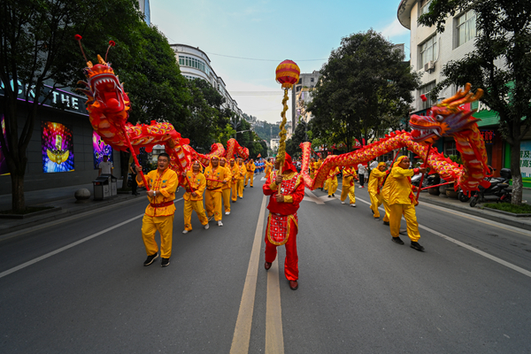 開幕式規(guī)模宏大,異常精彩。貴州廣播電視臺知名節(jié)目主持人、貴州村BA節(jié)目主持人李旭涵、劉子豪兩位重量級主持人親臨主持,熟練專業(yè)而又激情的引導(dǎo)互動為開幕式晚會增添爆棚氛圍。歌手沙寶亮傾情演唱《最初的信仰》《又回首》《暗香》等歌曲,世界散打冠軍、國家散打隊主教練許家恒,全國競走冠軍陳珍、全國青運(yùn)會冠軍田紫丹的互動以及本土節(jié)目《旗開得勝》《歡迎你到嵐皋來》《巴山魔芋情》等將嵐皋豐厚的旅游資源、特色產(chǎn)品、人文風(fēng)情展現(xiàn)得淋漓盡致。無比酷炫的燈光秀、煙花秀閃耀全場,56米巨龍騰空而起,光與影的交織變換構(gòu)成了一幅幅絕妙畫卷,現(xiàn)場掌聲雷動,喝彩聲、吶喊聲此起彼伏。