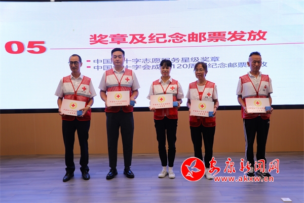 活動現(xiàn)場開展了心肺復蘇及AED(自動體外除顫儀)情景展示,為市政協(xié)、安康學院等9家單位發(fā)放了AED,為市級首支紅十字水上救生救援隊及四支新成立的紅十字志愿服務隊進行了授旗,為獲得中國紅十字志愿服務星級獎章、中國紅十字會成立120周年紀念郵票者頒發(fā)獎章和郵票。