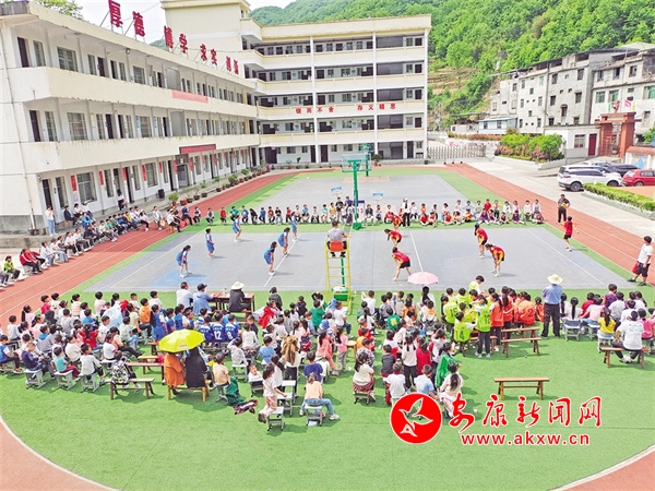 接球、轉(zhuǎn)身、起跳,冷水鎮(zhèn)中心小學的小球員憑借一個標準的三步上籃拿下2分,場邊同學們的加油吶喊聲不絕于耳。這場教共體內(nèi)的友誼賽,拉近了師生、學校之間的距離,大家成為情感聯(lián)系密切的“一家人”。