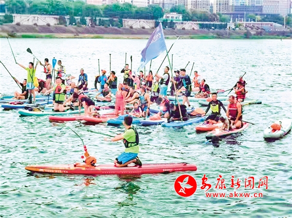 近年來,安康的水上運動,尤其是槳板運動吸引了越來越多的人關(guān)注,以其能促進人的反應(yīng)能力、四肢協(xié)調(diào)能力、平衡能力等特點成為安康“最熱門”的水上運動之一,更多市民主動參與其中,在運動中收獲健康和快樂。很多人在岸邊看見了槳板也會主動上前詢問,這讓吳忠很高興,他說,從一開始的門可羅雀到現(xiàn)在槳板群的群友已經(jīng)有220多個人,槳板運動的魅力讓更多人遠離了麻將桌、酒桌,放下了手機,意識到了鍛煉身體的好處。醫(yī)生、警察、個體經(jīng)營者、普通職員……各行各業(yè)的人因為興趣加入了槳板運動的隊伍之中,又把槳板的魅力推向更多人,大家彼此介紹、互相熟悉了解,在收獲友誼和健康的同時,逐漸組成了一個“槳板社會”。