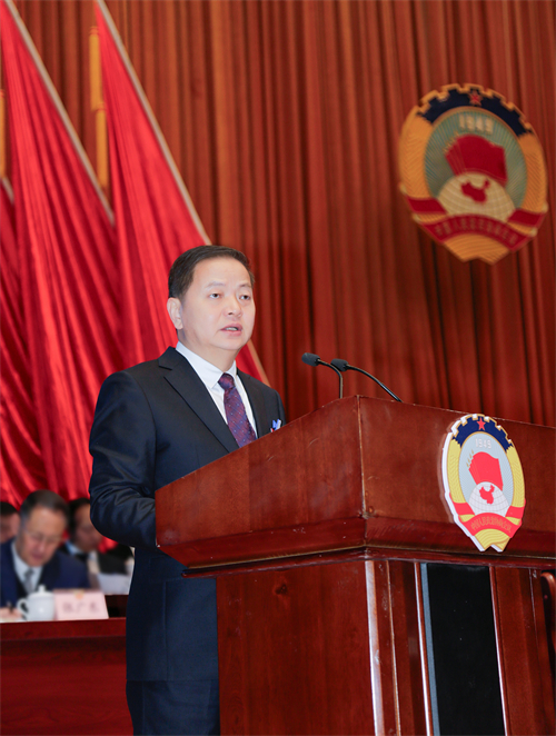 市政協(xié)主席周建功代表政協(xié)安康市第五屆委員會常務委員會作工作報告。記者 陸青波 攝
