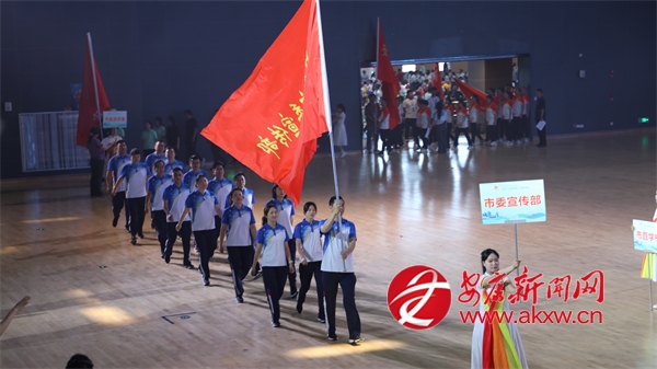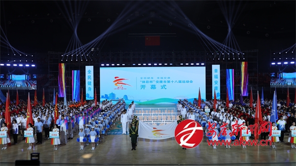 開幕式在暖場節(jié)目《幸福安康》的表演中拉開序幕。伴隨著高昂而優(yōu)美的旋律,儀仗隊隊員護擁著會旗與代表本屆市運會核心主題的標語隊步伐矯健地入場。由全市教育、體育、科技、文化、衛(wèi)生五大領域的杰出代表組成的觀禮團代表從主席臺前走過。緊隨其后的裁判員隊伍、13個青少年組運動員代表團、32 個行業(yè)組運動員代表團闊步入場,展現(xiàn)出朝氣蓬勃的精神風貌。入場儀式完畢,全場起立,面向國旗,奏唱中華人民共和國國歌。運動員代表與裁判員分別宣誓。hy4安康新聞網(wǎng)
