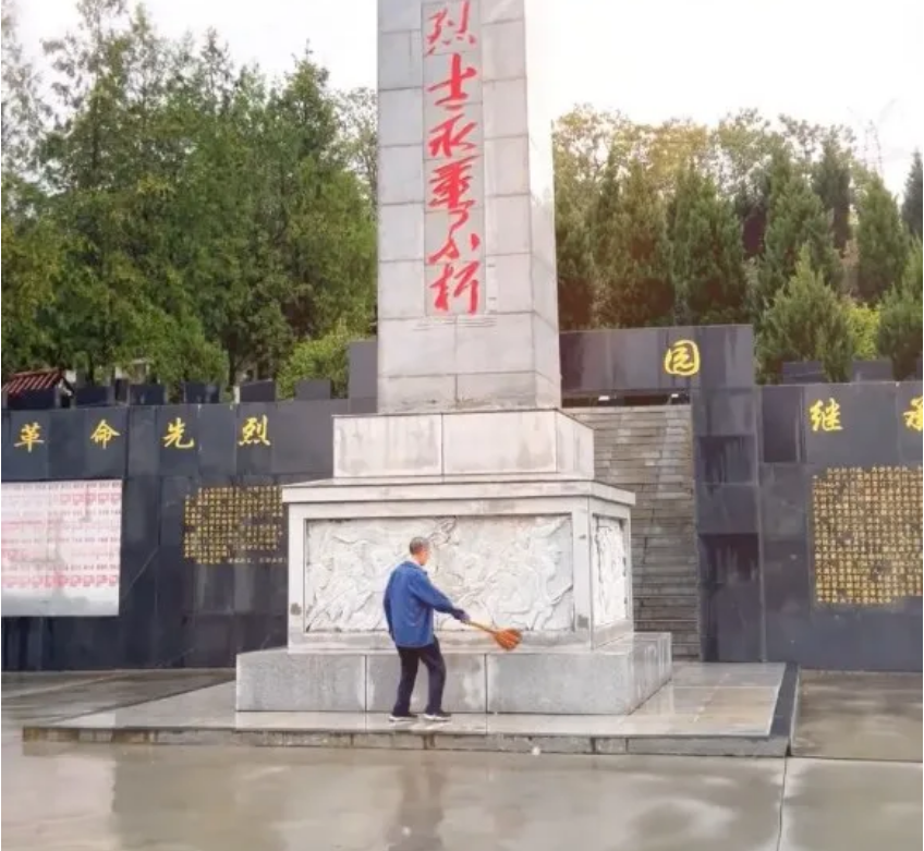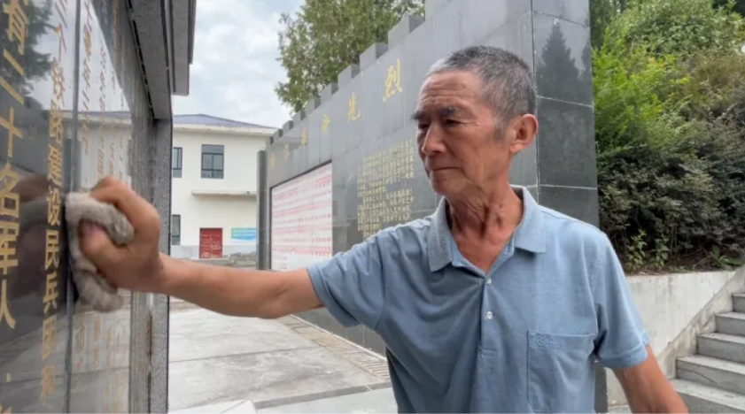 9月5日,守陵人王開茂在烈士陵園擦拭紀念碑。(圖片來源:嵐皋縣融媒中心)UWg安康新聞網(wǎng)