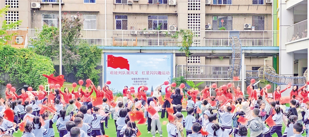 9月30日,安康市幼兒園舉辦“萌娃列隊(duì)展風(fēng)采 紅星閃閃趣運(yùn)動(dòng)”國(guó)慶主題活動(dòng)。 李生珍 攝wxP安康新聞網(wǎng)