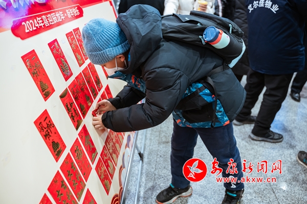 活動中,“驛路安康”愛心服務熱線工作人員身著安安、康康、龍辰辰人偶服,穿梭在人群中,一邊分發(fā)福字、對聯(lián),一邊與旅客們互動交流、合影留念。他們現(xiàn)場扶老攜幼、答疑解惑,熱情周到的服務溫暖了在場每一名旅客。