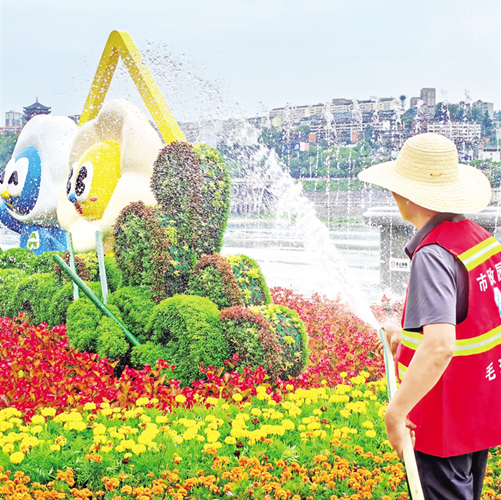 “我們每天投入7臺(tái)灑水車,日澆水量260余噸,并根據(jù)綠植苗木耐旱程度,加大澆水力度,延長(zhǎng)澆水時(shí)間,應(yīng)澆盡澆,不留死角,確保澆水質(zhì)量。同時(shí),對(duì)無(wú)澆灌系統(tǒng)覆蓋、車輛無(wú)法到達(dá)的綠地,由人工牽管澆灌,確保綠化澆灌全覆蓋,抗旱保綠出實(shí)效。”綠化抗旱防災(zāi)黨員突擊隊(duì)代表龔晨曦介紹。