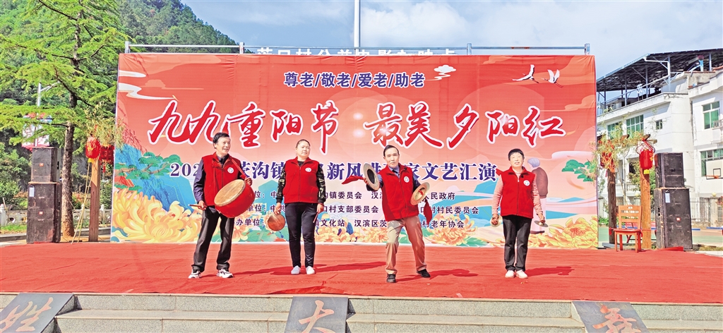 10月9日,漢濱區(qū)文旅廣電局聯(lián)合茨溝鎮(zhèn)茨口村舉辦了“九九重陽節(jié) 最美夕陽紅”孝義新風(fēng)進萬家文藝活動;顒右“尊老、敬老、愛老、助老”為主題,茨溝鎮(zhèn)茨口村老年協(xié)會分會還為本村98名老年人統(tǒng)一購買了紅馬甲和過冬的皮鞋,讓老人們度過一個幸?鞓返闹仃柟(jié)。 余遲 攝