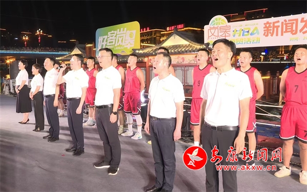 伴隨著一曲歡快的舞蹈《出水芙蓉》,新聞發(fā)布會正式拉開序幕。隨后,特色各異的文藝節(jié)目穿插進行,舞蹈《活力寶貝》和歌曲《歡迎你到嵐皋來》,將現(xiàn)場氛圍引入一陣陣熱潮。第二屆巴山漢水“陜西村BA”體旅促商貿(mào)活動組委會各工作組組長、當(dāng)?shù)厍蜿牶屠怖碴牊崃叶终嬲\地發(fā)出賽事宣言:“一座城服務(wù)一個人,好客嵐皋歡迎您!”。