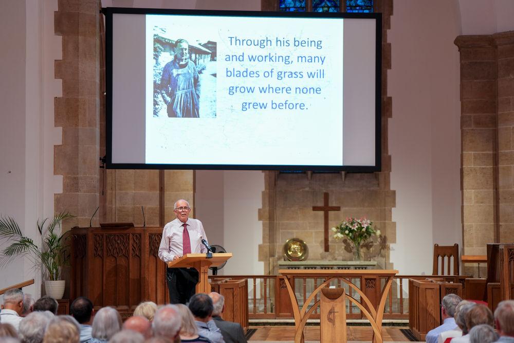 7月22日,在英國(guó)赫特福德郡哈彭登鎮(zhèn),喬治·艾爾溫·何克的外甥馬克·艾爾溫·托馬斯在紀(jì)念活動(dòng)上發(fā)表演講。新華社記者 吳魯 攝FUY安康新聞網(wǎng)