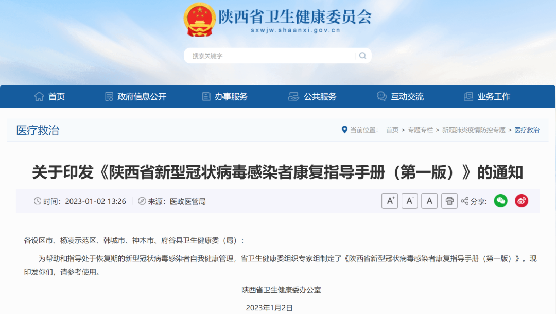 為幫助和指導(dǎo)處于恢復(fù)期的新型冠狀病毒感染者自我健康管理,省衛(wèi)生健康委組織專(zhuān)家組制定了《陜西省新型冠狀病毒感染者康復(fù)指導(dǎo)手冊(cè)(第一版)》。