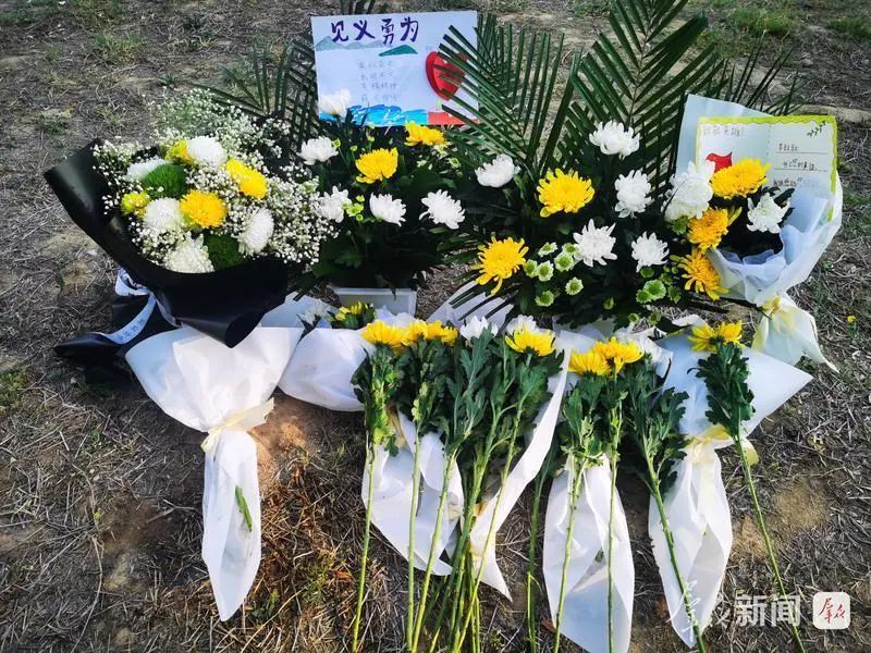 在李靜毅下水救人的河灘附近,自發(fā)前往悼念的群眾擺放鮮花、紀念卡,向這位救人英雄寄托哀思、獻上敬意。