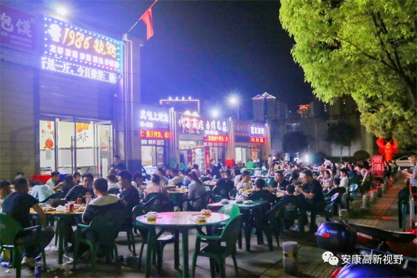 逛累了之后,美食之旅隨之開啟,除了各酒店餐飲可享受安康特色美食外,小吃夜市也成了市民游客在高新區(qū)饕餮一頓的不二選擇,走進美食街,燒烤、火鍋、小龍蝦等特色美食讓人目不暇接。華燈初上,商家已進入滿載狀態(tài),招呼聲、碰杯聲此起彼伏,店里、店外座無虛席,一桌桌市民游客享受著擼串啤酒的假日自在時光,夜經(jīng)濟在這個“五一”進一步激發(fā)消費的同時,也帶回來了人氣和煙火氣。