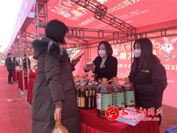 活動(dòng)現(xiàn)場(chǎng),伴隨著喜慶的音樂(lè)聲,攤位上擺滿了各種各樣的年貨,洋溢著濃濃的年味。市民們穿梭其中,漢陰炕炕饃、漢陽(yáng)蒸盆子、純正菜籽油、臘肉和香腸、年節(jié)飾品等60余種商品齊聚這里,吸引著過(guò)往消費(fèi)者駐足品嘗、選購(gòu)。