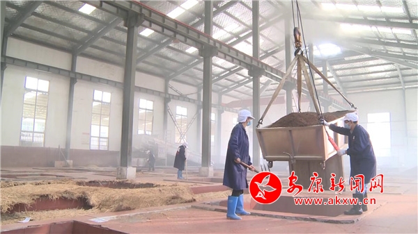 在漢陰縣雙乳鎮(zhèn)三同村頤品莊園酒廠標(biāo)準(zhǔn)化廠房車間里,工人們來(lái)回穿梭,在各自崗位上抓生產(chǎn)、趕進(jìn)度。釀酒車間里,新出爐的酒糟熱氣騰騰,工人們快速將其攤晾,冷卻后又開(kāi)始揮鏟拌曲,進(jìn)入下一輪的裝窖發(fā)酵;蒸鍋旁,工人鉚足干勁,一層一層均勻加料上甑,熟練地進(jìn)行各項(xiàng)工序。
