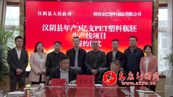 本網(wǎng)訊(通訊員 蘇凌云 劉婷)10月13日,漢陰縣年產(chǎn)3億支 PET塑料瓶胚生產(chǎn)線項(xiàng)目簽約。