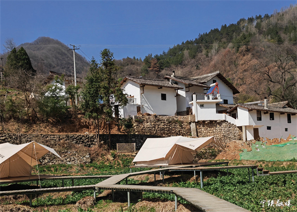 而在皇冠鎮(zhèn)南京坪村,早年在外經(jīng)商的王昭軍,2022年返鄉(xiāng)后,在南京坪村投資1000萬元,流轉群眾閑置住房,打造了復古加現(xiàn)代風格的“雅軒居”民宿,擁有6套房、6個帳篷,共20個床位。“五一”期間運營后,已經(jīng)被訂購一空。