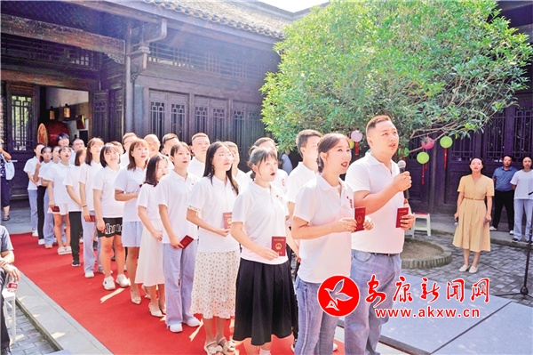 “和氣致祥”“真愛長春”“和鳴盛世”等書法作品為新人送上美好祝愿,以此倡導(dǎo)文明、健康、理性的婚戀觀和家庭觀,引導(dǎo)新人們感悟銘記婚姻締結(jié)之神圣、婚姻家庭之責(zé)任、婚姻和諧之美好,樹立社會(huì)新風(fēng)尚。“穿針乞巧”“曬書曬才”“編中國結(jié)”……一對(duì)對(duì)新人積極踴躍、各顯神通。手執(zhí)五色絲線,同時(shí)連續(xù)穿過五孔針,比一比誰能最先將線快速全部穿過針孔,期待“得巧”;巧手編織中國結(jié),傳承紅色中國情,七夕飛花與詩,情意綿綿,深遠(yuǎn)悠長。