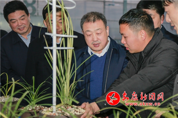 武文罡(左三)在寧陜縣城關鎮(zhèn)華嚴村花卉種養(yǎng)基地調研產業(yè)發(fā)展情況