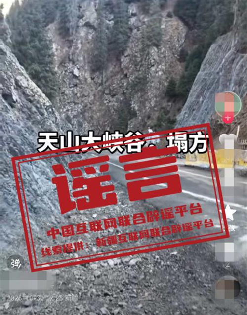 真相:近日,有網(wǎng)民在網(wǎng)絡平臺發(fā)布視頻并配文稱“天山大峽谷塌方”,引發(fā)關(guān)注。經(jīng)烏魯木齊市南山景區(qū)管理委員會核實,該情況不屬實,相關(guān)信息系謠言。網(wǎng)傳圖片實為2025年10月24日,烏魯木齊中佳勘察設計有限公司在天山大峽谷景區(qū)進入山溝1.3公里處進行山體排險作業(yè)時的畫面。(來源:“新疆網(wǎng)絡辟謠”微信公眾號)