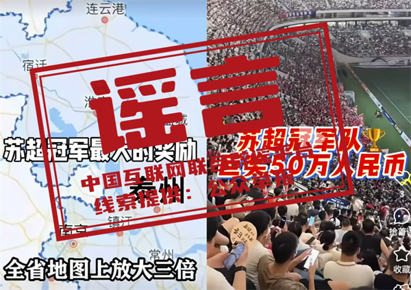辟謠:地圖放大三個字號?獎金五十萬?這些網傳蘇超冠軍隊獎勵都是假的!mWy安康新聞網