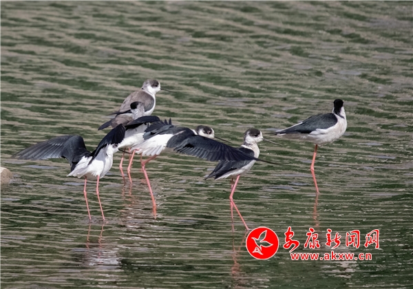 隨著漢陰縣生態(tài)環(huán)境的改善,越來越多的候鳥駐足該縣覓食、棲息。近日,在漢陰縣人工湖內(nèi),一群黑翅長腳鷸時而空中飛翔,時而淺灘處嬉戲覓食,受到了鳥類攝影愛好者的關(guān)注。黑翅長腳鷸,體羽由黑白兩色構(gòu)成,其紅色的腳細(xì)而長,顏值頗高。(圖文/尹正軍 黃智發(fā) 賀珍珍) CuZ安康新聞網(wǎng)