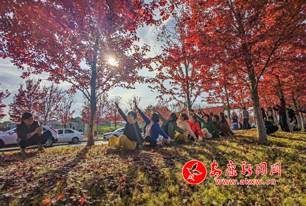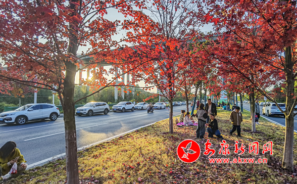 安康富強(qiáng)飛機(jī)場(chǎng)大道的紅葉進(jìn)入紅葉最佳觀賞期,每天有數(shù)百人在這里觀賞,拍照和打卡,留下紅葉的美好瞬間。(圖文:陳德模)Q6Y安康新聞網(wǎng)