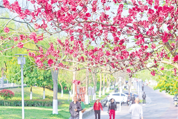漢江邊的桃花盛開(kāi)繪就春日畫(huà)卷