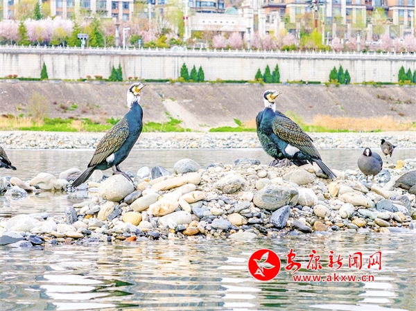 春日陽光下,漢江邊迎來一群水鳥。它們有的閉目養(yǎng)神,有的梳理羽毛,有的呆呆看著遠方,為這片江水增添了無盡的活力。近年來,我市持續(xù)推進漢江水質(zhì)保護工作,清澈透明的水質(zhì)吸引了越來越多的普通秋沙鴨、白骨頂雞、蒼鷺、鴛鴦等各種水鳥在這里棲息,給漢江增添了一道亮麗的風景線。高潔 攝 TQV安康新聞網(wǎng)