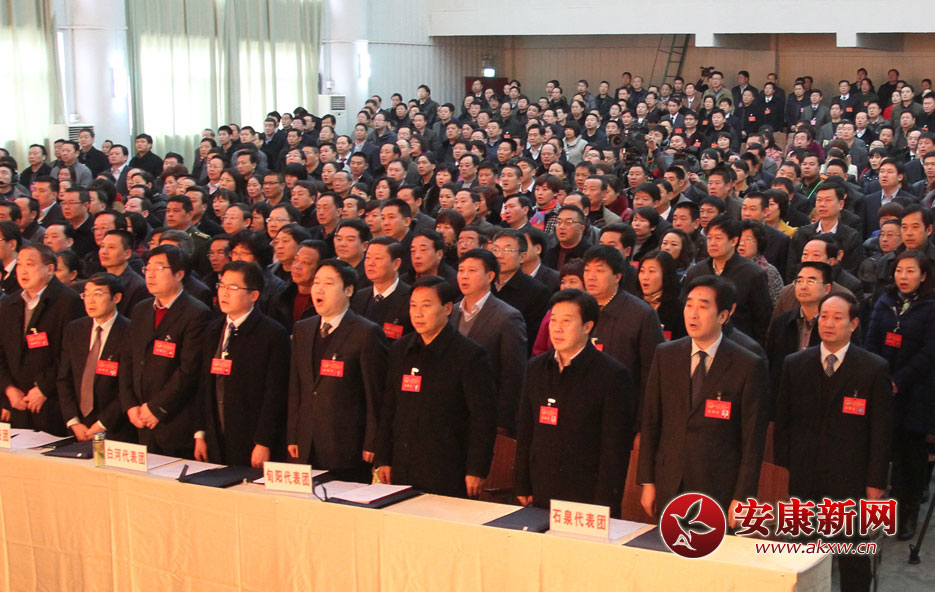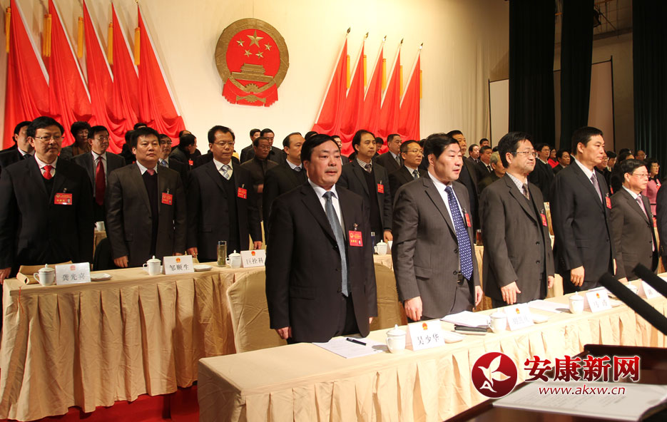 全體人員起立高唱國(guó)歌,安康市第三屆人民代表大會(huì)第五次會(huì)議勝利閉幕!