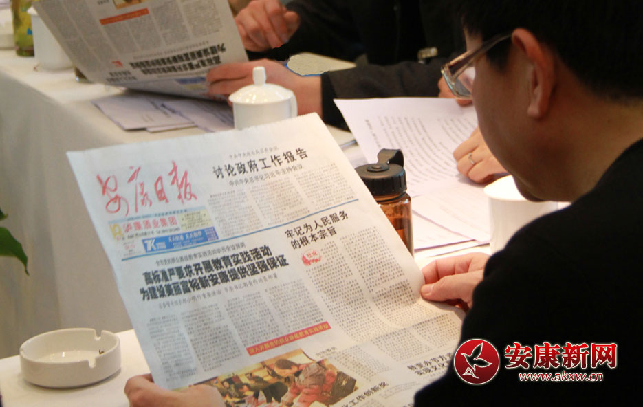 政協(xié)委員正在認(rèn)真地閱讀《安康日?qǐng)?bào)》關(guān)于兩會(huì)的報(bào)道。