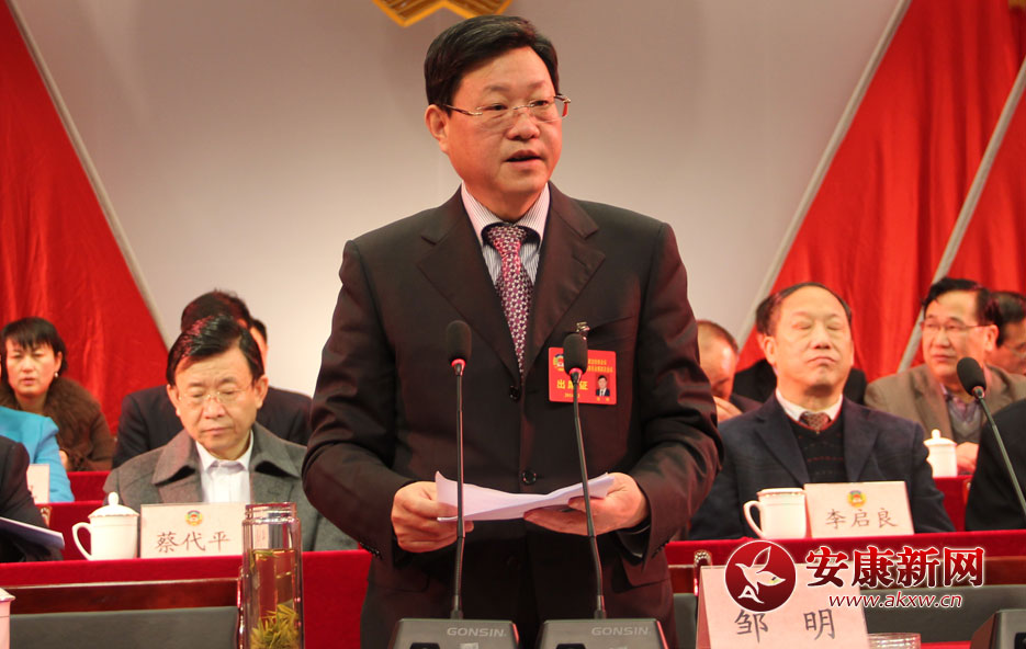 市政協(xié)主席鄒明代表政協(xié)安康市第三屆委員會(huì)常務(wù)委員會(huì)向大會(huì)報(bào)告工作。