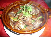 烹制前,要對(duì)竹鼠初加工。一是宰殺前用鐵絲拴住,敲掉尖牙,剁掉利爪,防止傷人。二是宰殺、剝皮。竹鼠皮毛價(jià)值高,不宜用開水燙殺拔毛。最好用白酒灌醉后,用短木棒擊頭部致死,便于剝皮。三是剖腹,去掉內(nèi)臟,洗凈。清燉時(shí),先將竹鼠胴體用沸水汆一下,然后剁成塊,加蔥段、姜片一同盛入砂鍋中,將八角、桂皮、丁香、大茴、花椒用紗布包裹扎緊,也放入砂鍋里,再放入少量白糖、胡椒粉、料酒、甜酒、香油、精鹽。用旺火燉至竹鼠肉半熟后,加入洗凈切成小塊的紅白蘿卜、山藥等,以中小火慢慢燉透燉熟,即可食用。