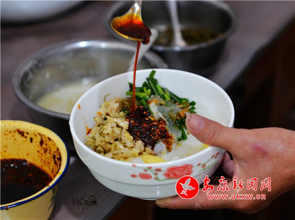 安康面魚兒,也有兩種不同的吃法,一種是漢陰的,叫“科馬古得兒”,面魚兒是白色的,用米粉做成,澆醋湯子吃;另一種是安康的,叫“漿水面魚兒”,面魚兒有黃色、白色兩種,黃色用包谷面,白色用米粉或菱角粉做成,配著漿水、漿水菜、大蒜辣子、炒韭菜和油潑辣子吃。7XB安康新聞網(wǎng)