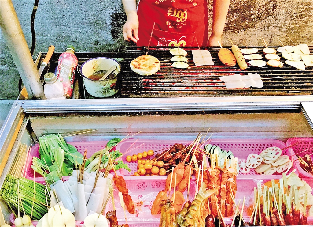 鐵簽子穿上各式各樣的菜,與多種調味料共同在炭火的作用下,由生變熟、由平淡向多滋多味轉變。辣子、花椒、孜然、芝麻、五香面等各種香料、調味品的通力配合,賦予了普通蔬菜別樣的生命和內涵。X8x安康新聞網